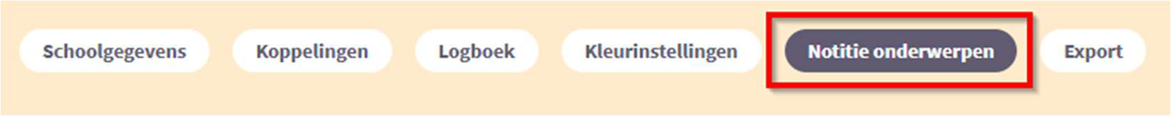 Klik op Instellingen > Notitie onderwerpen (zie hieronder, rond omrand).