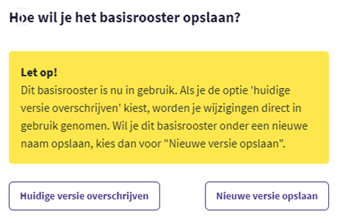 Je kunt het aangepaste basisrooster opslaan onder een nieuwe naam, je kunt er ook voor kiezen om het aangepaste basisrooster onder dezelfde naam op te slaan